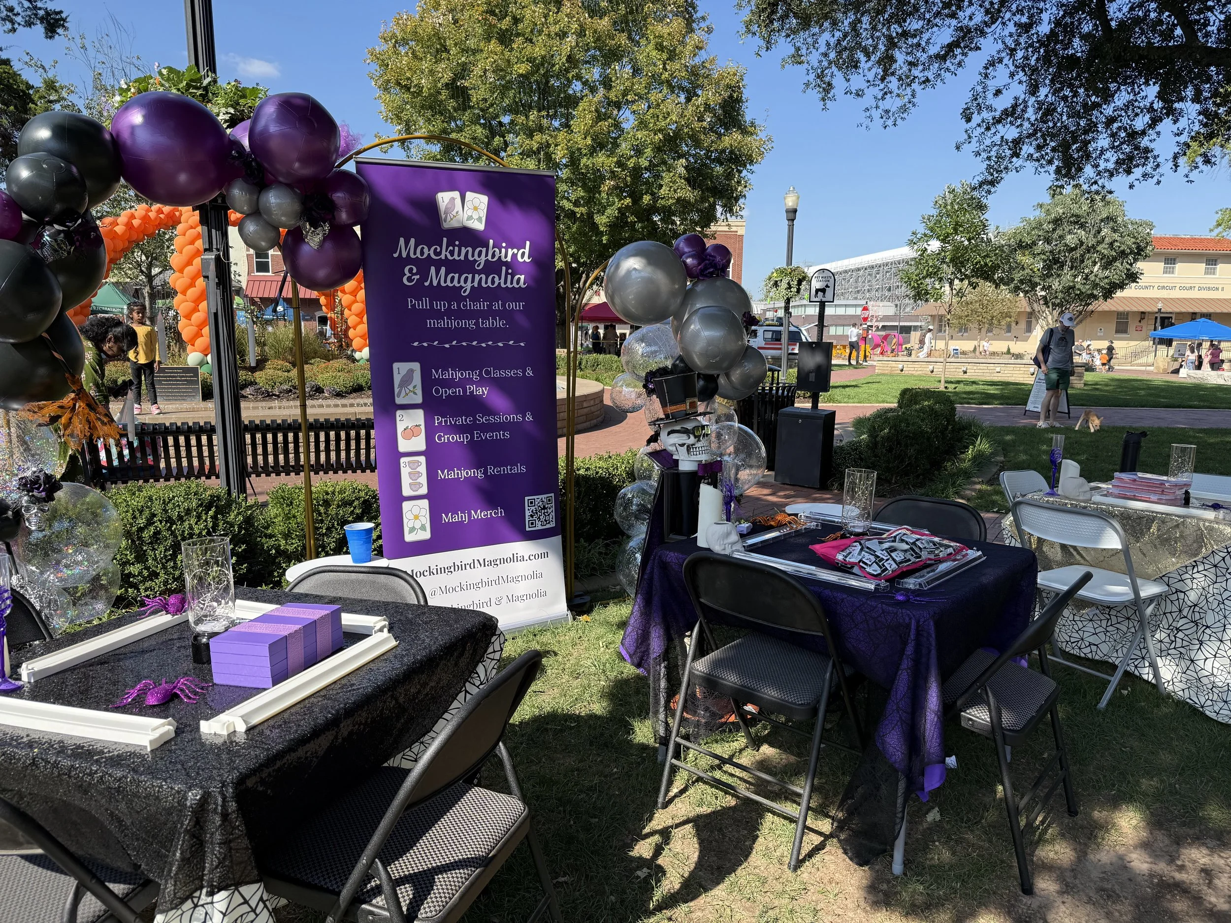 And judging by the comments that night—“Wow, that setup looks expensive!”—we’d say mission accomplished. But here’s the truth: our booth looked bougie without breaking the bank. We thought it’d be fun to pull back the curtain and share how we created the look on a budget, all while building out reusable basics for future Mahjong events.